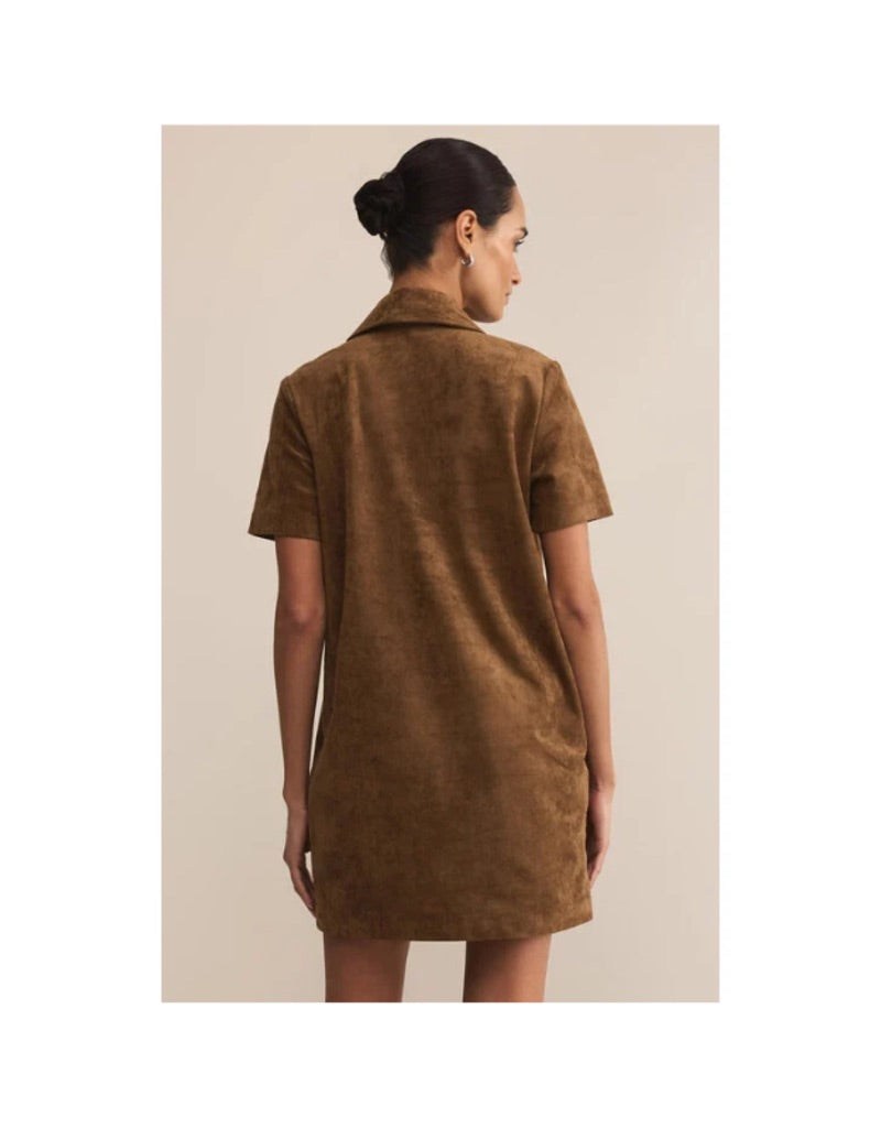 All the classic features of a shirt dress, now in ultra-soft faux suede. Fully lined with patch pockets and metal shank buttons, this mini is perfect for transitional days when you want style and ease. Wear it layered over a long-sleeve, topped with your fav cropped jacket, boots, endless possibilities!