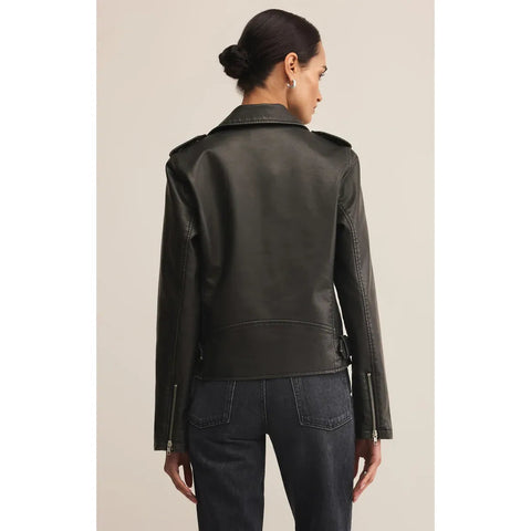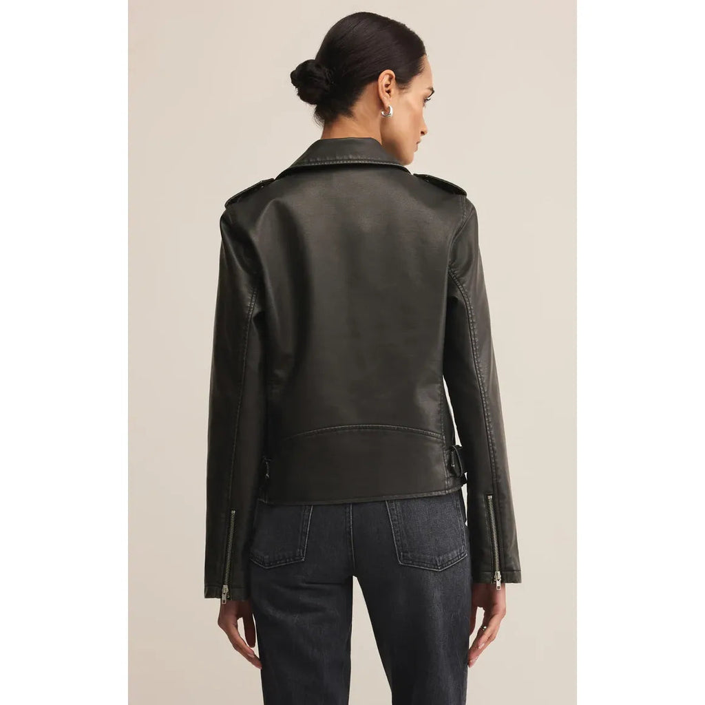 Elevate your edge with the Z Supply Alchemy Faux Leather Moto Jacket. Crafted from soft, supple faux leather, this sleek jacket features a bold zip front and functional zipper pockets, blending style with practicality. Perfect for layering over everything—from flowy dresses to your go-to denim—this moto jacket transforms any outfit into a daring statement. Embrace modern cool with a fearless finish.