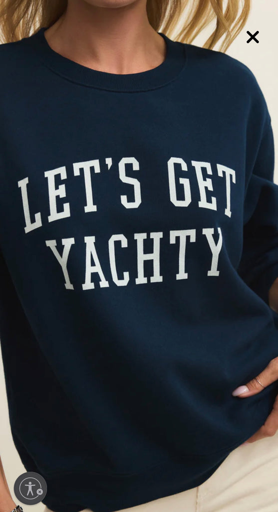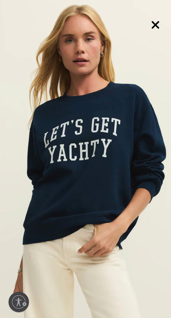 Let’s Get Yachty sweatshirt is crafted from 100% cotton in a stunning Eclipse Navy Blue. Featuring a relaxed fit and a cozy brushed fleece interior, it’s the perfect layer for laid-back days on or off the water.